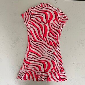 TAIL Activewear Short Slv 1/4 Zip Zebra Print Colorful Polyester Spandex Golf Dress in Pink White Black Coral NWOT
