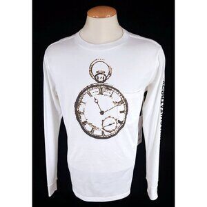 TAKAHIROMIYASHITA TheSoloist. has a real knack for mysterious graphics, like the stopwatch one on this T-shirt. It's made from smooth cotton-jersey and printed with the label's moniker down the sleeve.