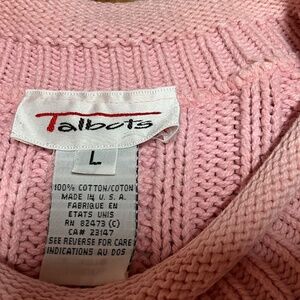 TALBOTS 100% Cotton Pink Cable Knit Sweater Rolled Mock Neck MADE IN USA Sz L