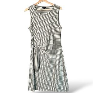 TALBOTS 100% Cotton Side Tie Shift Dress - SUNDAY MORNING STRIPE Green / Cream