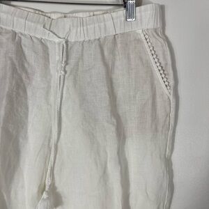 Talbots 100% Linen White Capri Pants Elastic Waist Womens Size 2