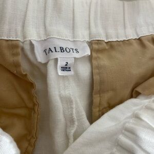 TALBOTS 100% Linen White Capri Pants Elastic Waist Womens Size 2 Summer