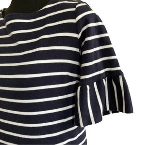 TALBOTS 100% cotton ruffle bell sleeve navy with white stripes shift dre…