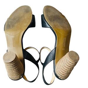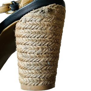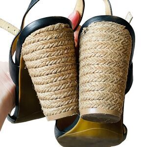 TALBOTS Black Strappy Espadrille Heel Black Leather Pumps SZ 10