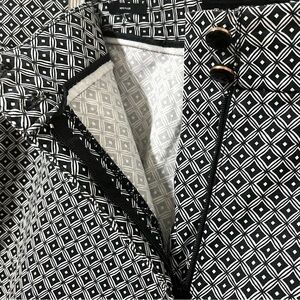 🔹 TALBOTS Black White Geometric Print Tapered Hem Cropped Heritage Pants