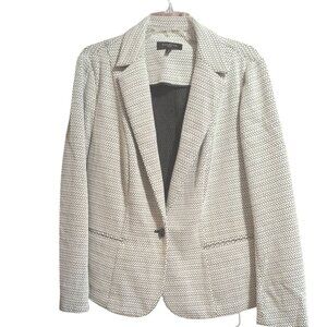 TALBOTS Blazer White/Black Single Button Up Long Sleeve Cotton Blend with Pocket