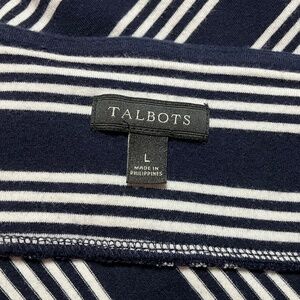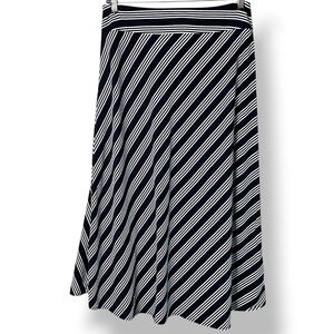 TALBOTS Cotton Modal Blend Navy White Stripe Jersey Knit Midi Skirt Hi-Lo Hem L