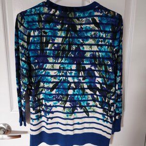 TALBOTS Floral Striped Cardigan Sweater Button Up 3/4 Sleeve Cotton Blend Size S