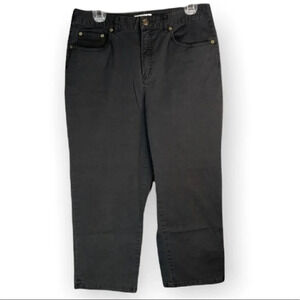 Ladies black Talbots cotton stretch 5 pocket loose fit high waisted cropped jeans.