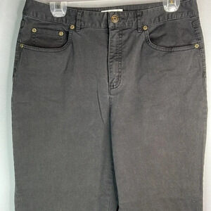 TALBOTS High Waisted Jeans Black Cotton Stretch Loose Fit Cropped Size 10