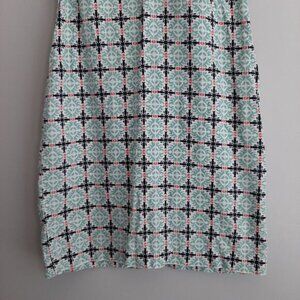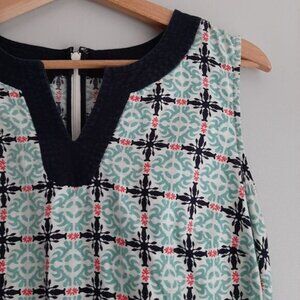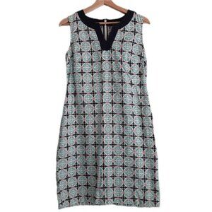 TALBOTS Linen Cotton Blend Wood Block Pattern Mini Shift Dress Mini Blue Sz 4