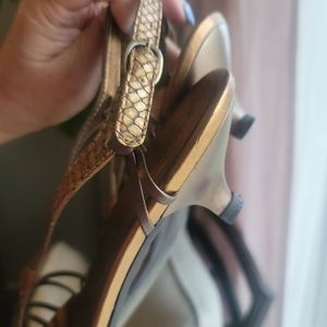 TALBOTS Open Toe Slingback Kitten Heel Sandals Size 9 in Brown