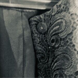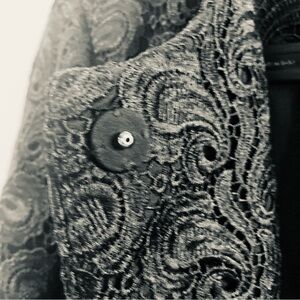 TALBOTS Sz 12 P Brocade Venice Lace Paisley Pattern Knee Length Overcoat Jacket. Beautiful longline jacket. Lined. Snap buttons closure. Perfect for the holidays, an event, a party or because you love to make a statement.
