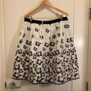 TALBOTS Embroidered Butterfly Pleated Knee Length Skirt Lined Exposed Zipper Sz 14P. Scalloped hem. Light as a feather. Waist: 18” Length: 24”