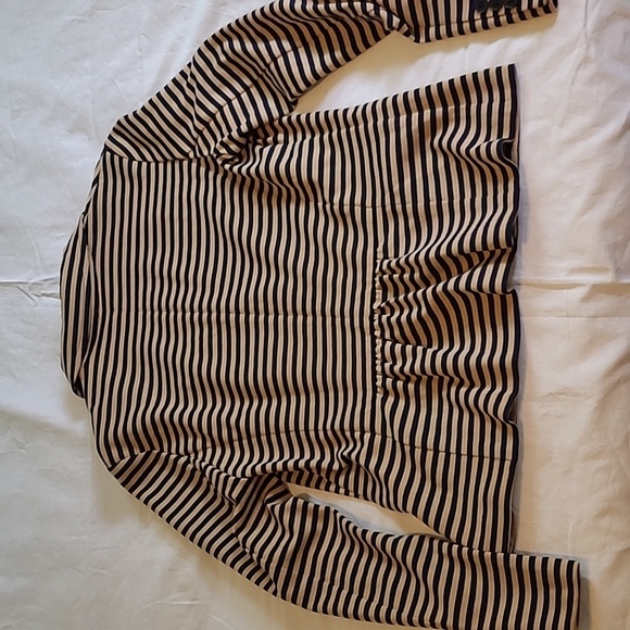 TALBOTS Tan and Navy Striped Tailored Blazer with Peplum Detail on Back