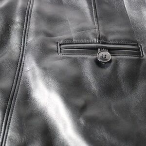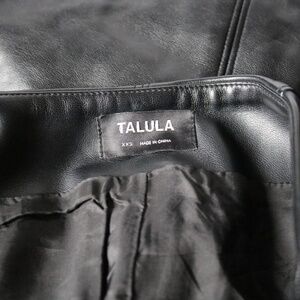Cute Talula black mini skirt in faux leather, size XXS. Zippered closure which runs the full length of the skirt. Small back pocket with button closure on rear (and is a real pocket but very small) Approx. measurements: waist = 12", skirt length = 15.5", bottom width = 18". Pre-owned but in excellent condition. A few very minor marks from occasional wear, as can be seen in pictures, but hardly noticeable. Smoke-free, pet friendly home!