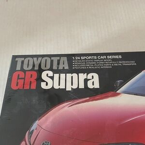 🏎 New in a sealed box. Tamiya Toyota GR Supra 1/24 scale plastic model assembly kit. Length: 183mm, width: 85mm, height: 54mm.