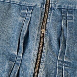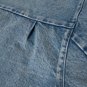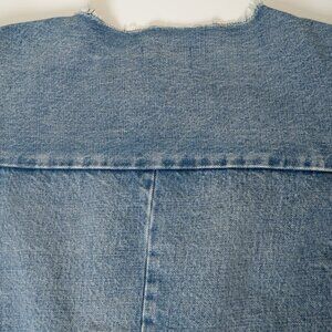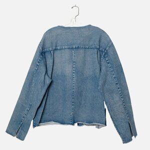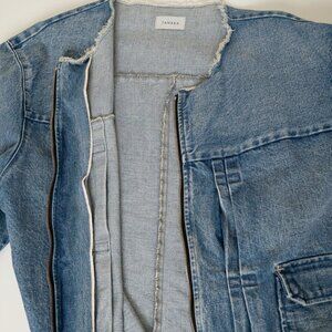 TANAKA Denim Work Jacket No Collar Raw Hem Zip Blue Mid Washed Unisex