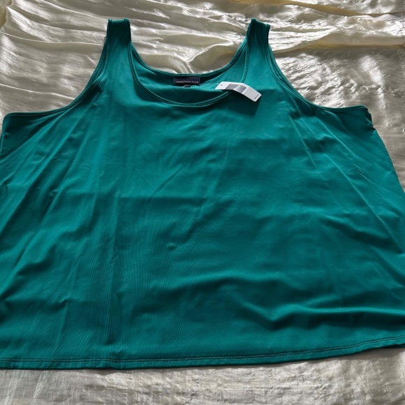 TANK TOP, DEEP SCOOP NECK, GREEN, SIZE 4X, EXTRA WIDE STRAPS, NYLON SPANDEX, ADDITION ELLE, TAGS ON, IN ORIGINAL BAG, NEVER WORN