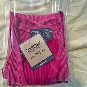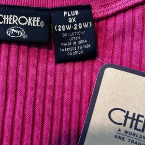 TANK TOP, RIBBED FABRIC, FUSCHIA, SIZE 4X, 100% COTTON, VEE NECK, CHEROKEE, IN BAG, TAGS ON, NEVER WORN