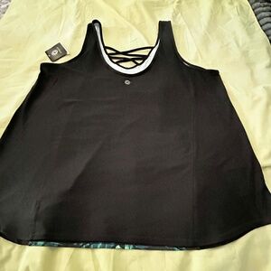 TANK TOP, SLIMMING SIDES, BLACK (With Blue, White, Green), SIZE 4X, LACE ACCENTS, VEE NECK, LONG LENGTH, ACTIVE ZONE for PENNINGTONS, IN BAG, TAGS ON, NEVER WORN