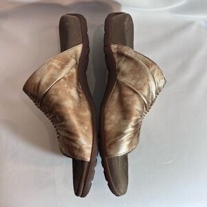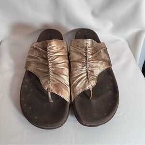 TAOS Sz 10 Gift 2 Front Post Ruched Gold Sandals Confort Insoles Leather