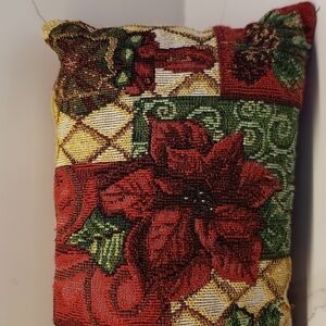 #837 Tapestry rectangle decorative pillow Christmas Holiday 17"l x 7"w zipper enclosure for easy wash holly poinsetta (missing tags) cushion