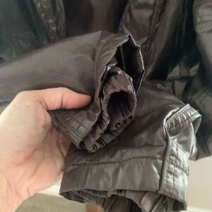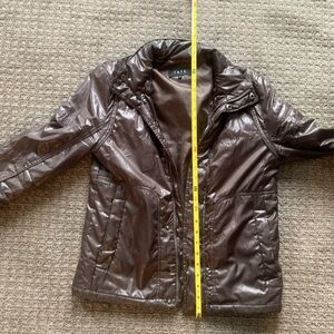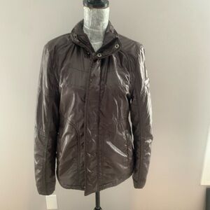 Really nice lightweight jacket. More form fitting than it appears, so I showed it on a mannequin as well. Small hood zipped into the collar. Small zip up picket in upper right sleeve.