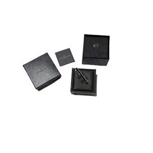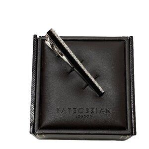 Tateossian Rhodium Black Cat's Eye Etched D-Shaped Tie Clip 53mm. HTF Style!