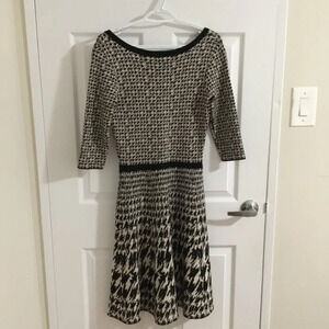 TAYLOR HOUNDSTOOTH Black & White Fit & Flare Dress SIZE S