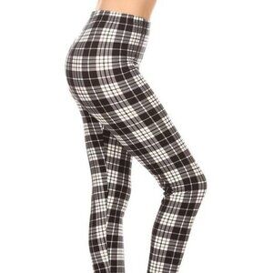 TCLC Black & White Plaid Full Length Leggings Size 10 NWT