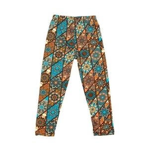 TCLC TAN Brown & Teal Abstract Print Full length Leggings Size 2-10 NWT