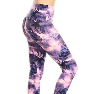 TCLC Purple & Pink Tye Dye Yoga Style Full Length Leggings Size 2-10 NWT