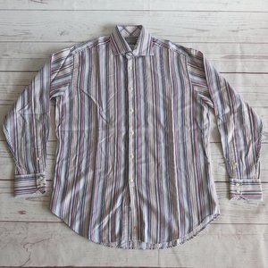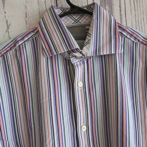 TD Thomas Dean Multi Color Stripe Button Down Long Sleeve Shirt - Size Large
