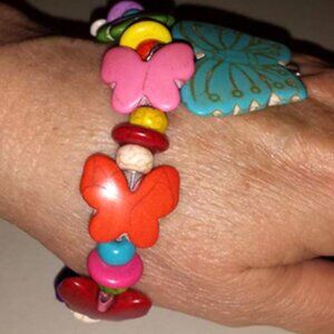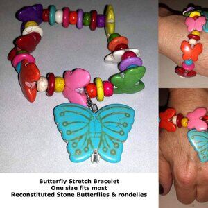 Custom Made one of a kind: One size fit most stretch bracelet - Reconstituted Butterflies & rondelles with Butterfly Charm