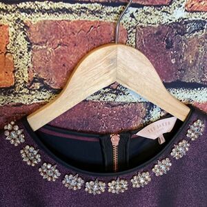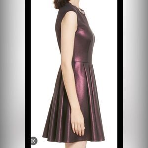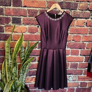 TED BAKER 0 US 2 Ayma Embellished Oxblood Metallic Fit & Flare Skater Dress in like new condition.