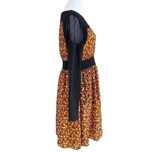 TED BAKER BARTA YELLOW ORANGE FLORAL BLACK SHEER CHIFFON PLEATED A-LINE DRESS