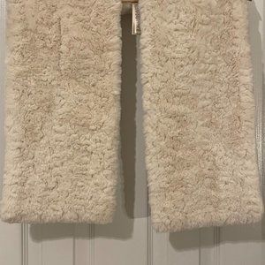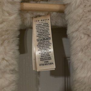 This extremely soft faux fur scarf is from Ted Baker, it has a slot where the scarf can be passed through to secure it, or it can hang open around the neck (slot cannot be detected through the fur). It is very soft and only worn once - The colour is a pale cream colour, with no stains, makeup stains or discolouration.