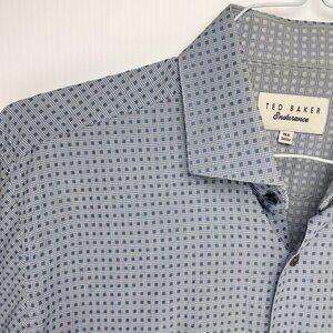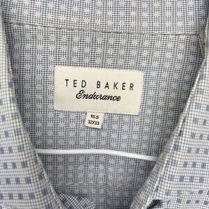 TED BAKER Gingham Blue White Bottom Down up Buisness Casual Dress Shirt sz 15.5