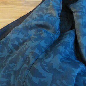 A tailored jacket with a slender profile is detailed with a crisp spread collar and a series of pockets that give it a retro, military-inspired feel. The handsome coat is cut from soft, wool-infused fabric and lined with a rich leaf print.