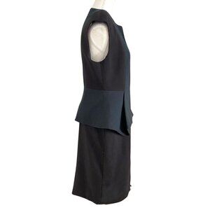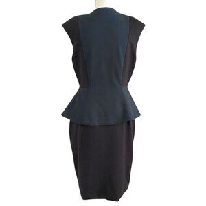 TED BAKER JUMANA BLACK FOREST GREEN COLORBLOCK SLEEVELESS PEPLUM ZIP UP MIDI DRESS, Textured contrast accentuates the fitted silhouette and architectural peplum waistline of a sleek cap-sleeve sheath. Front and center, a shiny two-way zipper bridges the split neckline and seductively slit hem. Two-way front-zip closure - Split neckline - Slight cap sleeves - Stretch lining - Regular shoulder pads for a structured touch on a super stretch and soft shell - sheath style - pencil skirt - formal business perfect dress for fall and winter seasons with the wool content.