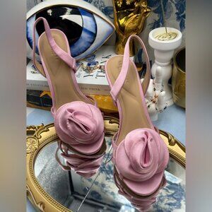 🧿🧿 TED BAKER ARIA ROSE Pink Floral Applique Sandal An artful rose embellishment heightens the contemporary romance of this slingback sandal, lifted by a logo-embellished heel. 3 1/2" heel Elasticized slingback strap Sculptural flared heel Open toe with oversized flower appliqué Lightly padded insole for comfort Perfect for weddings, parties, or elevated nights out COMPOSITION 85% Polyester, 12% Glass, 3% Sheep Leather SIZE Size US 6.5 / EU 37 🧿 NWOT, NWOB Brand New, Never Worn No inclusions: no tags; no box; no dustbag. As is (as pictured). MSRP $ 250 🧿🧿🧿🧿🧿🧿🧿 ALL OUR ITEMS ARE AUTHENTIC. We are a shopping collective of friends working in the fashion industry around the world, based in Toronto 🧿 Check out our closet for more great finds AND BUNDLE TO SAVE! Every attempt is made to describe and capture our items as best and as accurately as possible, taking note of any possible flaws. Ultimately, please refer to all photos for overall condition. Please feel free to ask questions or request more photos. Follow us on IG @the.procuress for more photos of our stock! Happy shopping, The Procuress 🧿