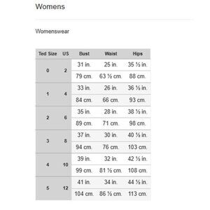 *Size 0 TED = US 2 (included size chart)