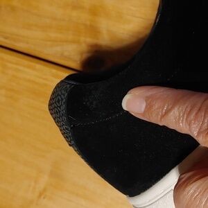 - great pre-loved condition, a tiny bit of peeling on bottom of right shoe as well as a couple of small areas of suede wear on right shoe, please see pics