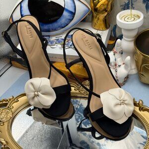 🆕 TED BAKER 🧿 NWOB ARIA ROSE Black & White Pearl Embellished Sandal, Sz US 6.5