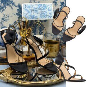 🆕 TED BAKER 🧿 NWOB Belle Black Satin Half Bow Sandal, Sz 39 US 8.5