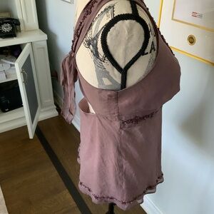TED BAKER Silk Purple Mauve Beaded V-Neck Tie Back Sleeveless Blouse SZ Small