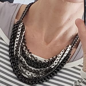 Hi. I am wondering where the shortest chain sits? Right around neck or does it sit lower? Picture of it on if possible?😎
