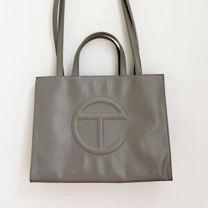 Featuring a double strap (handles and cross-body straps), embossed logo, a main compartment with magnetic snap closure and internal zipper pocket. Made from faux leather and twill lining.
