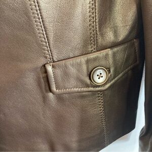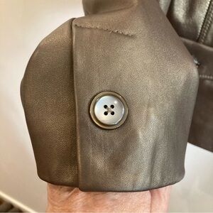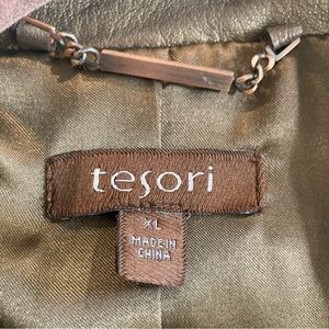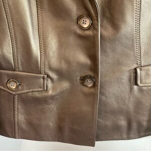 TESORI Sz XL Classic Cool Gold Pewter Classic Pockets Leather Statement Blazer. Gorgeous statement piece. Metallic accent for your wardrobe. Neutral.